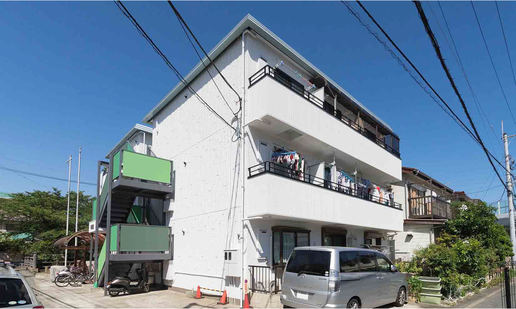 - 大規模修繕に併せて、近隣物件と差別化を図るため外壁・共用部に対して緑と白を主体とするカラーリング実施