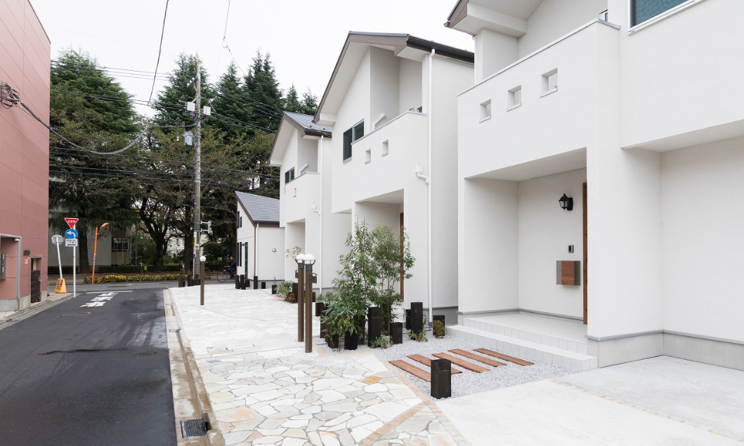 自主管理歩道、デザインタイル等の設置により街並み形成にこだわった土地活用